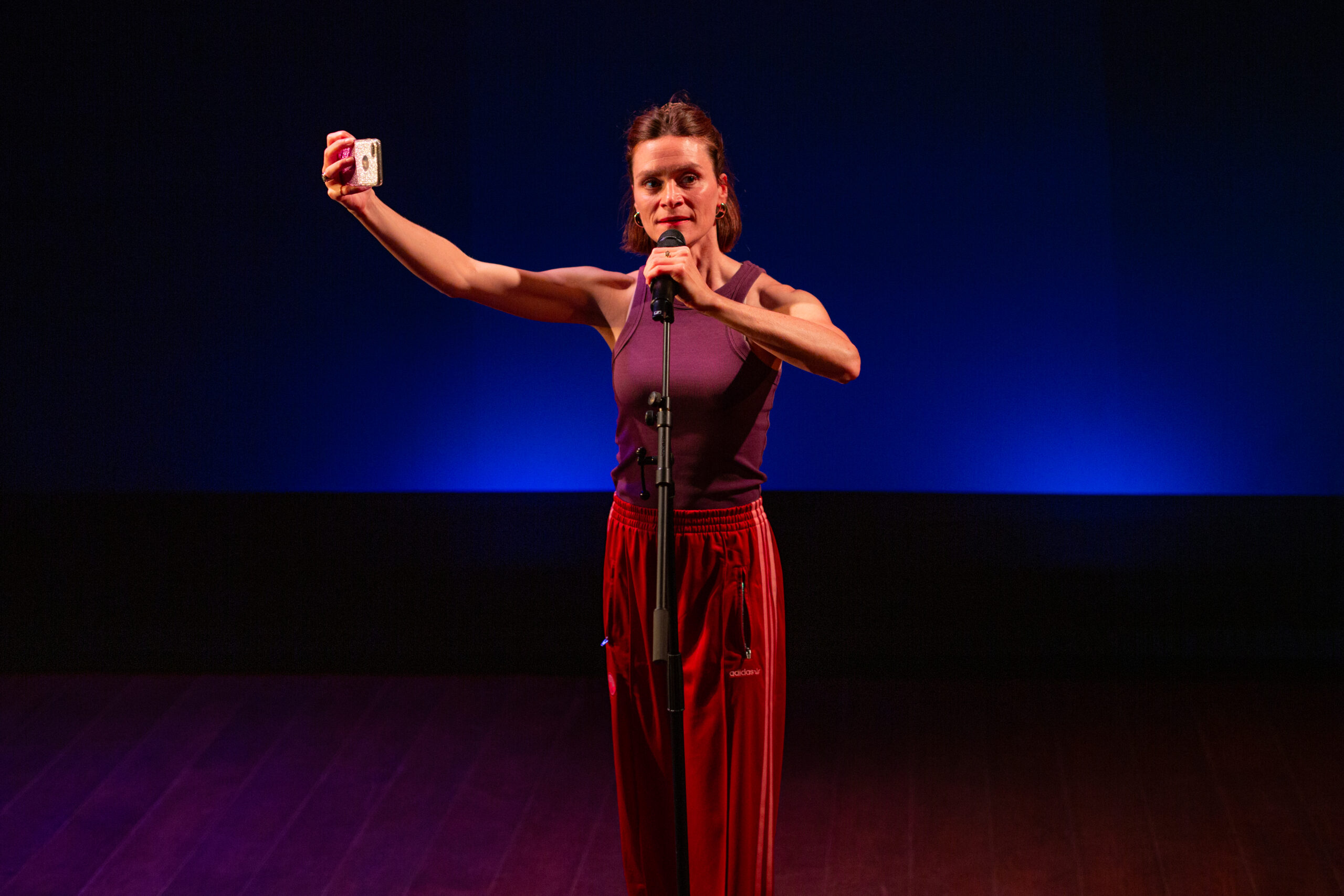 Au fil du spectacle, elle dévoile comment Tinder se présente comme une application moderne et progressiste, alors que son fonctionnement algorithmique reproduit — voire accentue — les dynamiques patriarcales de notre société. Les femmes et les hommes ne sont pas mis à égalité : le scoring, la mise en avant des profils, la valeur attribuée via une « note de désirabilité »… tout semble construit pour perpétuer des rapports de domination déjà bien ancrés.